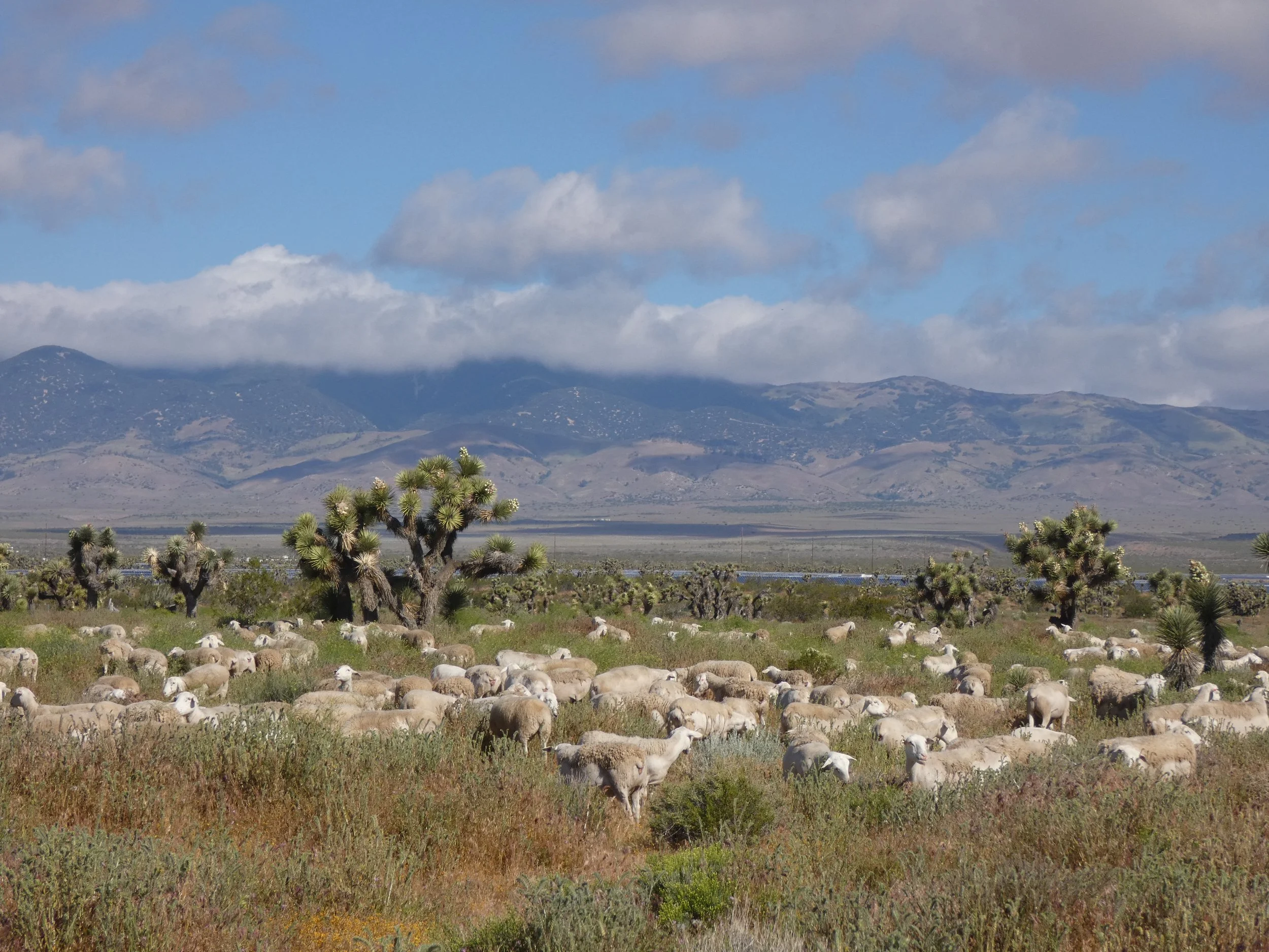 With the catastrophic wildfires that have plagued the region, controlling fuel sources is a crucial aspect of Star Creek Stewards’ mission. The ability of the sheep to incorporate themselves into an environment in an ecologically friendly way, and to control the underbrush sustainably is of the utmost importance in this current era of megadrought and intense wildfire. Not only do the animals reduce fuel loads, they also can control invasive vegetation. We selected sheep rather than goats due to the sensitive nature of the Joshua tree woodlands we manage. Goats tend to browse more, and the sheep do not harm the Western Joshua tree sprouts.